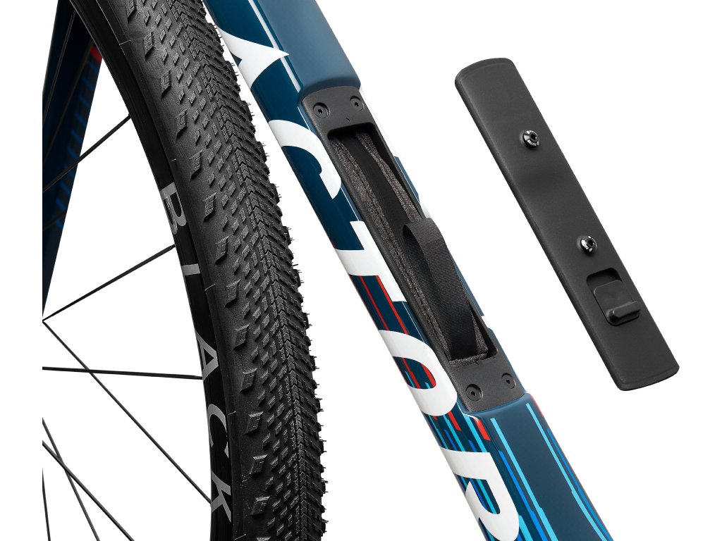 In-frame úložiště S možností umístit duše, CO2 bombičky a sadu na opravu defektu, in-frame úložiště ALUTO eliminuje potřebu podsedlové nebo řídítkové brašny, což ušetří významné watty odporu. Soběstačnost na kole již nemusí být na úkor aerodynamiky nebo elegantního vzhledu.